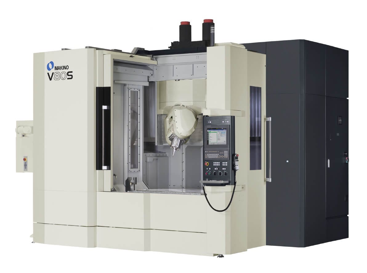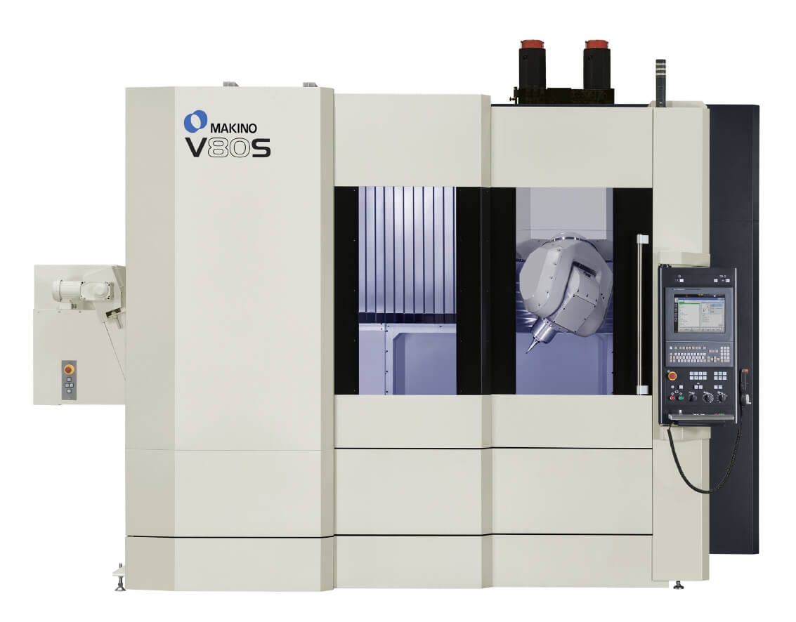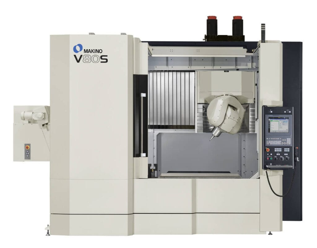 Das Vertikalbearbeitungszentrum V80S ist eine fünfachsige, kontinuierliche Bearbeitungsplattform zur Fertigung von großen Werkzeugen und Formteilen.  Es verfügt über eine schwenkbare Drehspindel, die sicherstellt, dass die Werkzeugspitze für einen optimalen Kontakt mit dem Werkstück positioniert werden kann. Dies verlängert die Werkzeuglebensdauer, sorgt für hervorragende Oberflächen und minimiert manuelle Nachbearbeitungsprozesse.